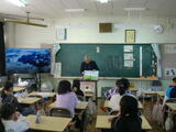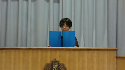 そのあと、校長先生のお話がありました。今回はパワーポイントを使って、学年ごとに様々な行事を振り返り、分かりやすく話してくださいました。