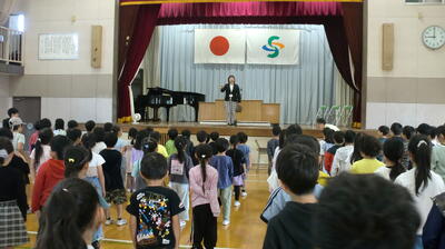 更に、3連休を前に、児童指導主任の先生から「学校のきまり」についてのお話もありました。「自転車に乗ってよい範囲」や「帰宅時刻」など、みんなが安全に過ごすための大切なルールを改めて確認しました。