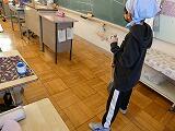 はじめに、部屋の片付けをしました。友達と助け合いながら布団などを畳んで、部屋をきれいにすることができました。