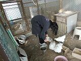 えさやり、水やり、小屋の掃除を手際よく進めます。