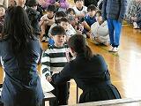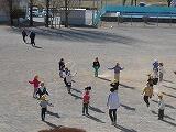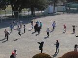 毎日行っている全校運動の様子です。現在はなわとびをしています。