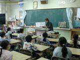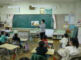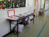 旗川幼稚園の年長組さんが来てくれて、1年生が校舎内を案内しました。教室に入って学習している様子や、職員室や理科室、保健室といった特別教室を見学していました。