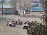 揺れが収まるのを確認し、それぞれの場所から校庭に避難しました。