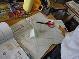 5年生の算数では、角柱と円柱の学習をしています。今日は、三角柱と円柱の見取り図を描き、三角柱については展開図も描くことができました。工作用紙に描いた展開図を切り取り、組み立てることを通して、理解を深めることができました。
