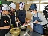 6年生の家庭科の学習で、調理実習を行いました。今回は、ジャーマンポテトを作りました。
