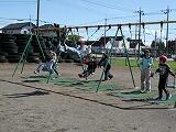 いろいろな方法で回してみようと試行錯誤を繰り返します。風をおくってみたらどうかな。ブランコに乗りながらだと・・・?高いところからだとどうかな?いろいろな考えが浮かびます。