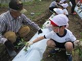 1年生は、初めて見るサツマイモの苗を興味深く眺め、ボランティアの方の話をよく聞き、植えることができました。