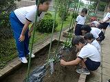 2年生は、去年の様子を覚えていたようで、「斜めに植えるんだよね。」と上手に植えていました。