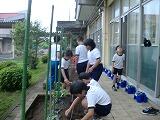 チャレンジ教室では、自立活動の一環として、自分の野菜を育てています。朝や休み時間には水をあげて、お世話をしています。