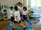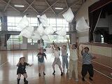 音楽に合わせて、ダンスをしたり玉入れをしたりします。