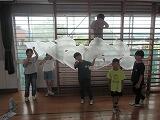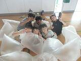 ビニル袋を使用して、グループで作品を作成しました。アイディアを出し合い、次々と作品を仕上げるグループもあれば、じっくり顔の向きや形にこだわりをもつグループもありました。