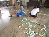 ペットボトルキャップを使用し、様々な形を作りました。1時間目は個人で作成、2時間目はグループで作成しました。どのグループも色や形にセンスの良さが光ってます。