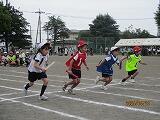 代表者によるリレーです。真剣な表情で走る姿に感動しました。男子も女子も白熱した戦いになりました。