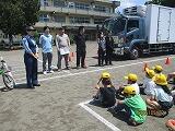 1・2年生が交通安全教室を行いました。今回は、トラックによる巻き込みを想定して行われました。