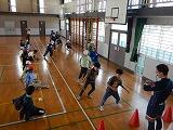 5,6年生は体育館で、反復横跳びを行っています。自分のベストが出るよう、全力で頑張っています。