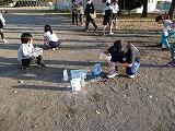 何やら校庭で「ポーン!!」という楽しそうな音。サイエンスクラブのみなさんがペットボトルロケットを見事に飛ばしていました。