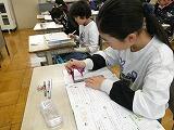 いよいよ、円をかきます。中心の場所を決めて針をさし、手首をひねって一気にコンパスを回します。少し苦戦しながらも、きれいにかけた円にうれしそうな3年生でした。