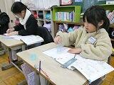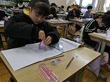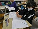 3年生が算数「円と球」の学習で、初めてコンパスを使って円をかきました。