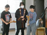 手拍子を打って合いの手を入れる練習をします。