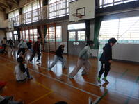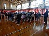 明日の入学式に向けて、5年生、6年生が清掃や会場の準備を行いました。