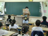4年生では「自分が知っている話(3年とうげ)に似ていたので、聞いていて楽しかったです。」6年生では「教えてもらっていたとらが、教えてくれていたねこに襲いかかるところがびっくりしました。」チャレンジ学級では「うさぎのシモンがずっと『うんちっち』と言っていたのに、最後は『オナラブー』と言ったのがおもしろかったです。」「『うんちっち』としか言わないうさぎを食べたオオカミが『うんちっち』としか言えなくなったのがおもしろかったです。」